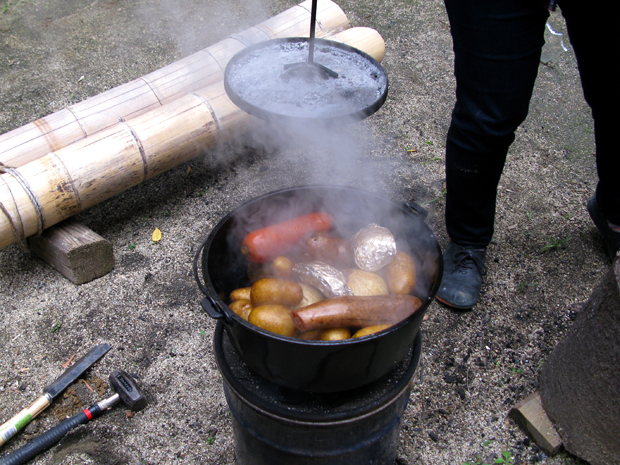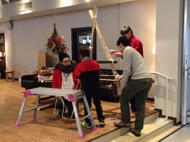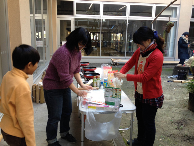 ご参加いただいた5組のご家族とクラブメンバーが、料理班・しつらえ班・装飾班・防寒対策班に分かれて作り上げるパーティー。準備ができたらみんなでテーブルを囲い美味しい食事とケーキを食べて、楽しくほっこりすごしました。食事の後は「めざせ!キングベア決定戦!!」と題したサバイバルの知識を競うゲーム!子どもも大人も一緒になって盛り上がりました。最後はサンタさんが会場に来てくれるサプライズを用意。子どもたちはサンタさんからのプレゼントにとても嬉しそうでした!